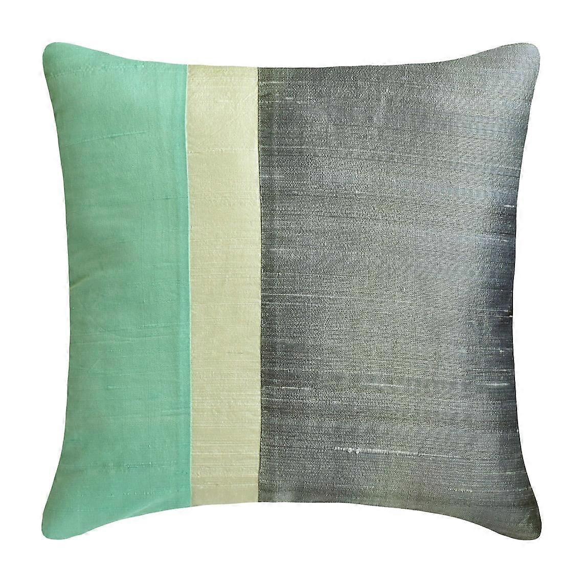 HomeCentric Cushion Cover for Sofa Sea Green & Grey, Pack of 2, 14x14 inch, Silk Color Block Patchwork, Compatible with Splendour