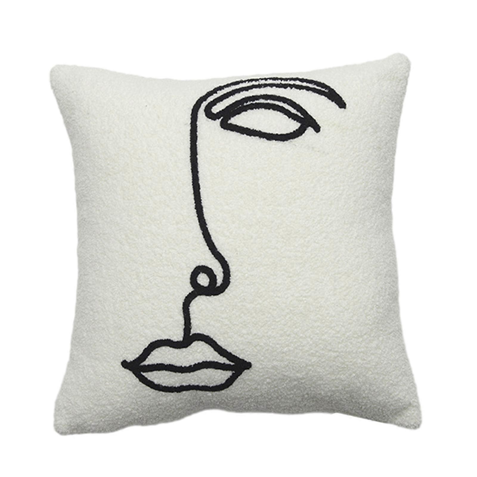 Washable Cushion Cover Plush Pillowcase with Face Embroidery Cushion Covers for Living Room, Bedroom Office Pillow Case 450*450mm