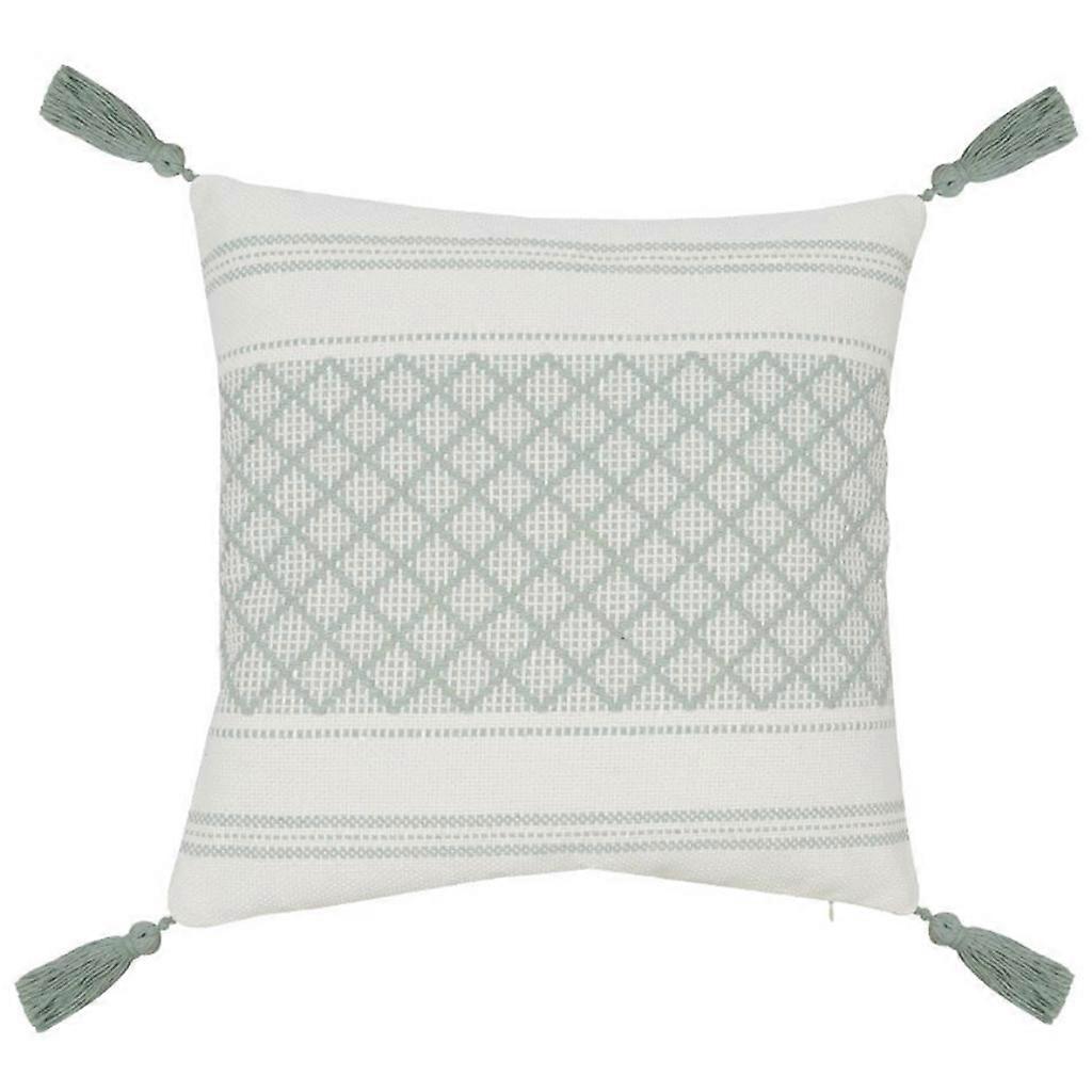 Boho Lumbar Throw Pillow Cover Farmhouse Tassel Decorative Cushion Covers Geometric Pillowcase for Sofa Bed Bedroom Living Room 450mm*450mm Green