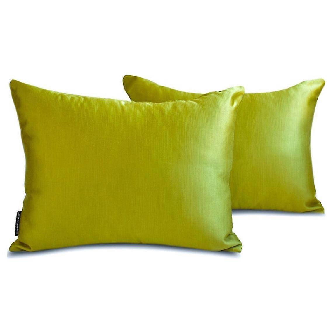 HomeCentric Luxury Lumbar Pillow Cover Chartreuse Pack of 2, 14"x20" Satin, Modern Cushion Cover Style - Compatible with Decor