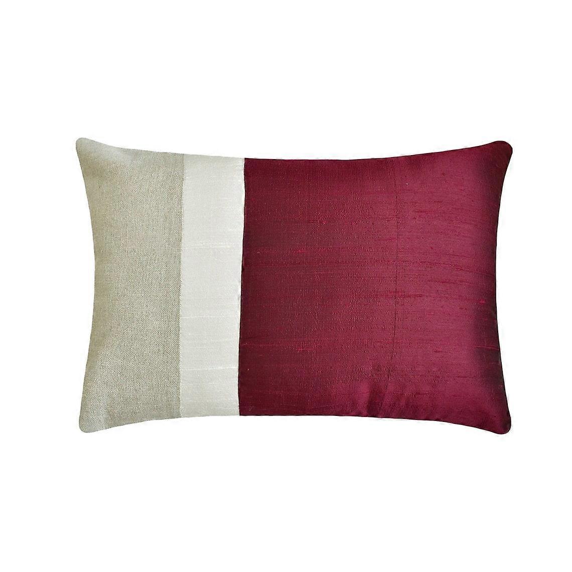 HomeCentric Decorative Oblong Pillow Cover 12"x14" Berry Pink - Silk Color Block Patchwork for Sofa, Bed, Patio - Compatible with Modern Décor