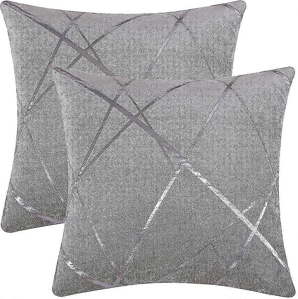 Square Chenille Cushion Cover, 16 inches × 16 inches, Silver Gray Stripes
