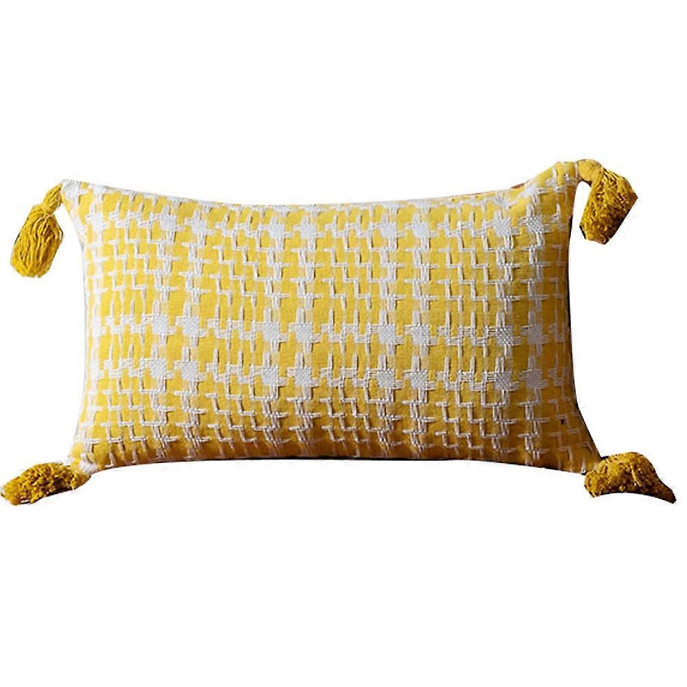 Rectangular tassel geometric woven pillow cover suitable for many places