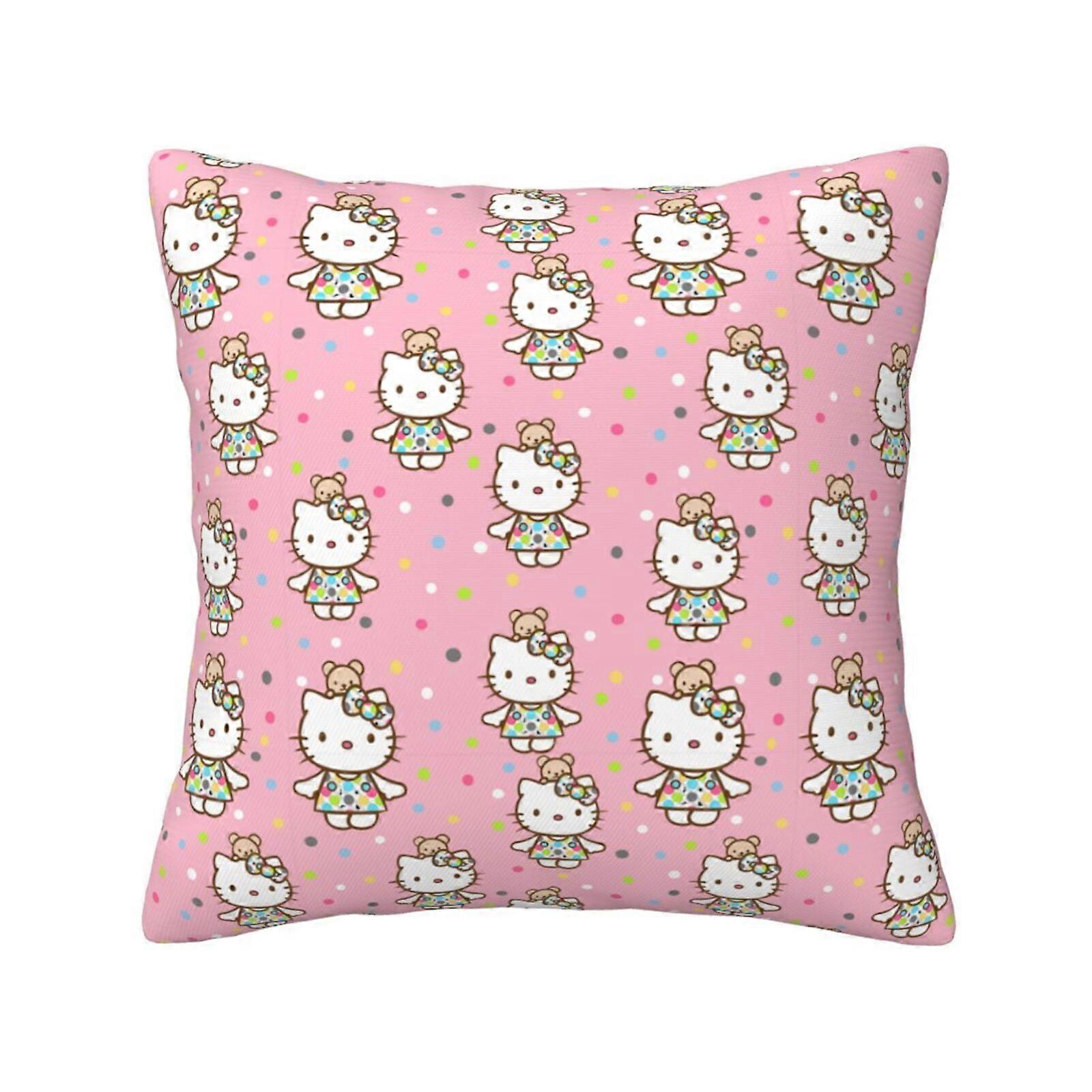 Hello Kitty Pattern Four Seasons Universal Pillow Cover Square Fabric Cushion Cover Suitable for Sofa Bed Bedroom Living Decoration 18"x18"