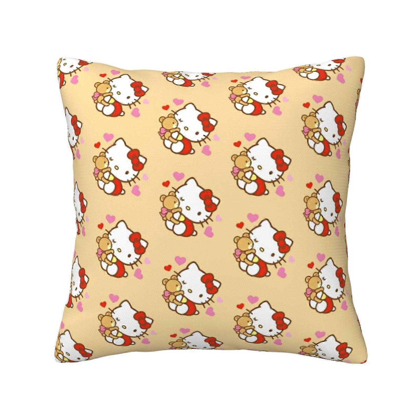 Hello Kitty Pattern Four Seasons Universal Pillow Cover Square Fabric Cushion Cover Suitable for Sofa Bed Bedroom Living Decoration 20"x20"