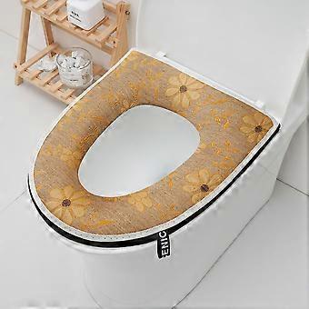 Cotton Linen Breathable Toilet Seat Cover with Handle Zipper Washable Soft Cushion
