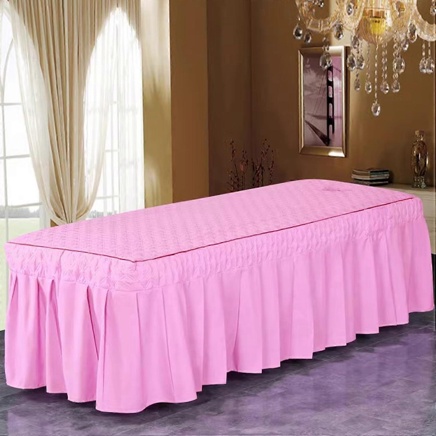 Massage Bed Cover with Face Hole 70 x 180 cm Pink, Washable Duvet Cover for Spa Salon Couch with Skirt