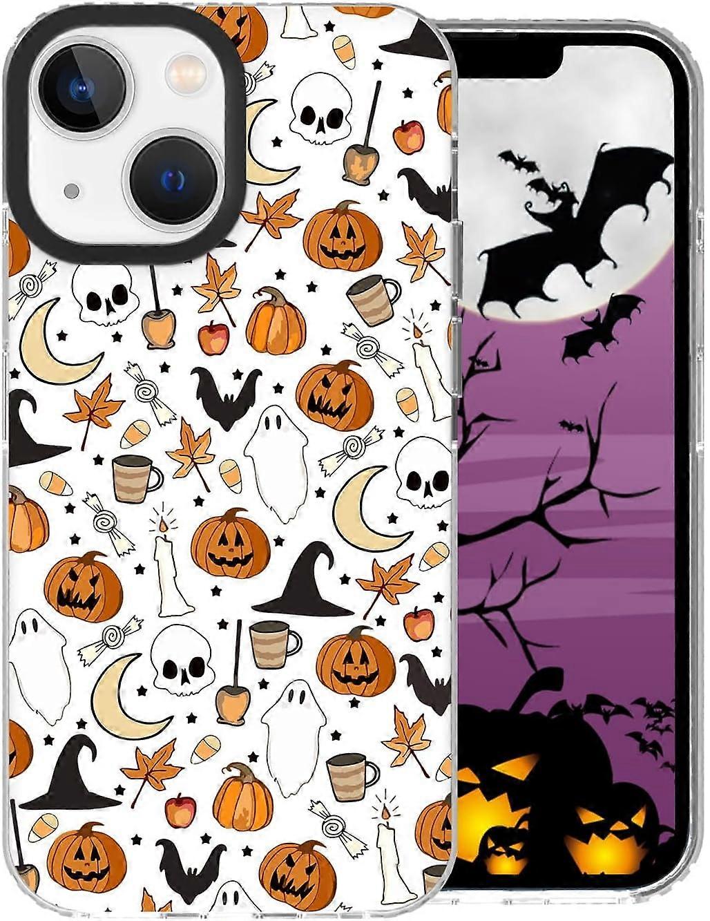 Halloween Phone Case compatible with iPhone 14 Pro Max, Clear Anti-Yellowing Shockproof Cover with Skull, Bat & Pumpkin Design, Black Camera Frame,