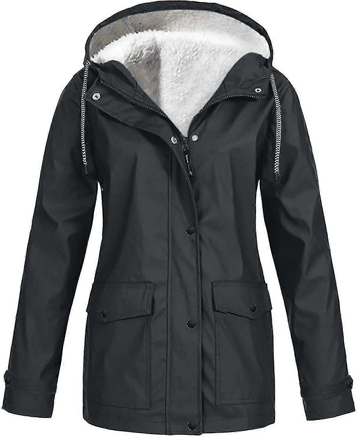 Waterproof Hooded Raincoat for Women - Lined Fleece Winter Outdoor Jacket