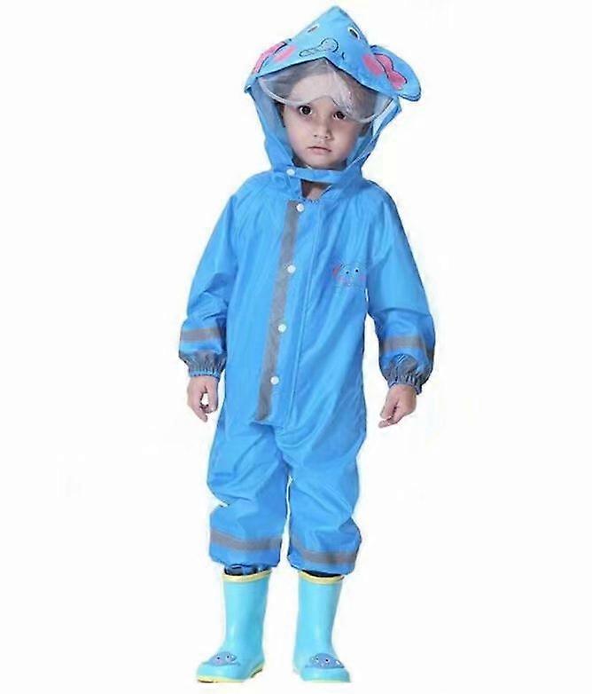 Children's Raincoat Boys and Girls Raincoat Reflective Raincoat 100% Waterproof and Rainproof Raincoat Raincoat Suitable for 2-8 Years(Blue-S)
