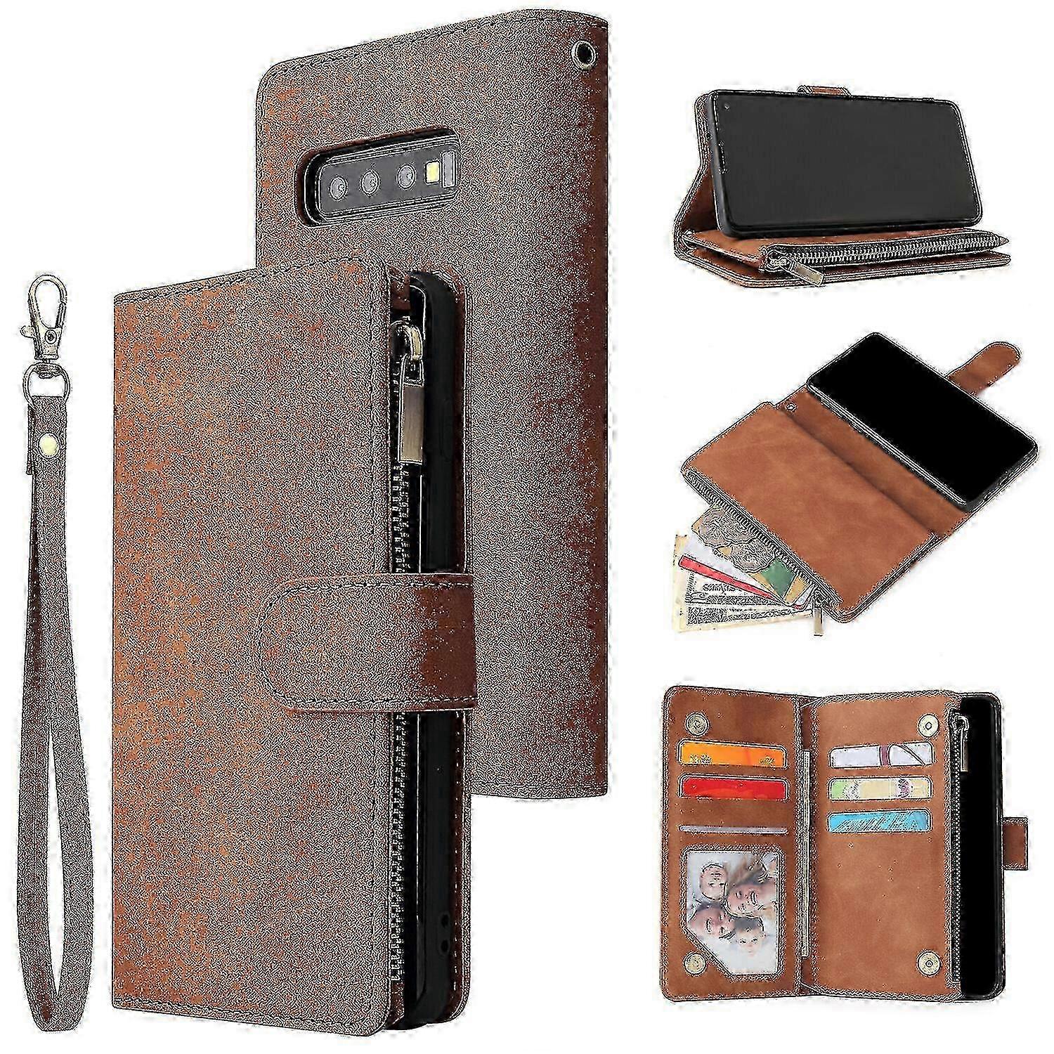 Compatible with Samsung Galaxy S10 Plus Leather Magnetic Handbag Zipper Pocket Cover Wrist Strap Compatible With Samsung Galaxy S10 Plus Case w