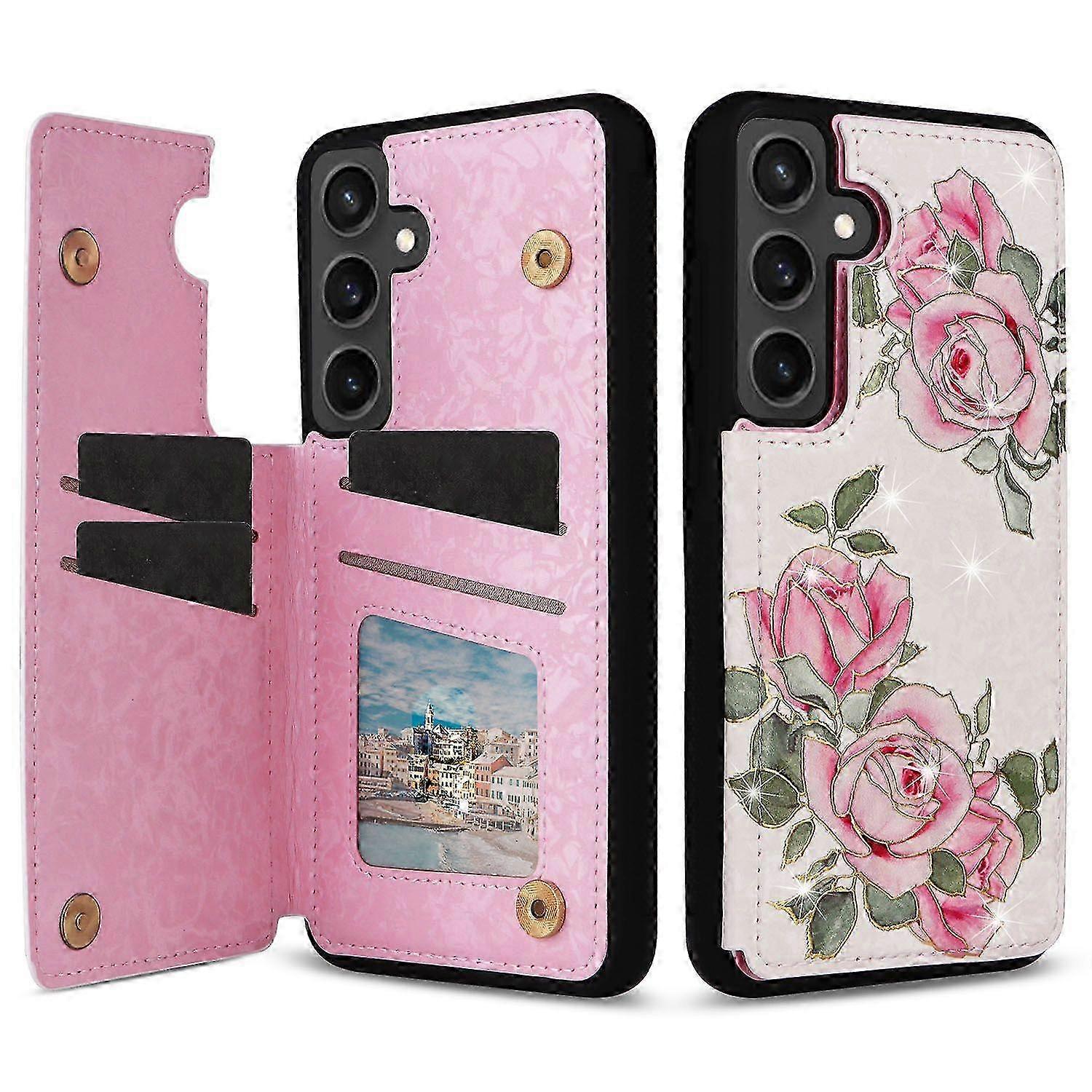 For Samsung Galaxy S25 FE Case Flower Leather TPU Phone Cover Card Slots 2025