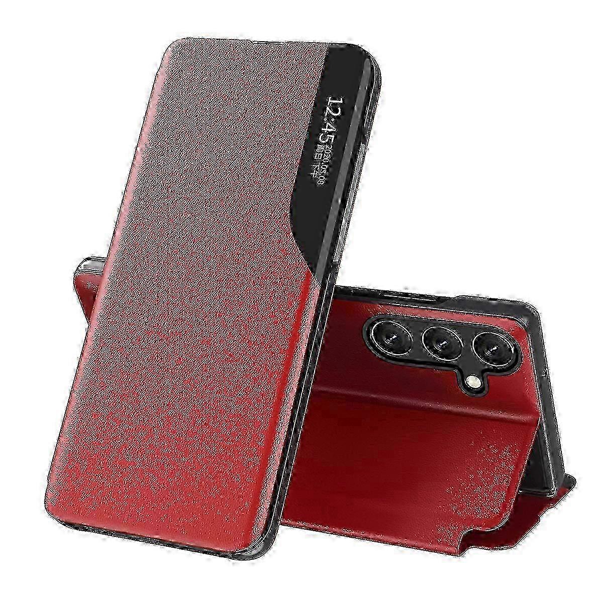For Samsung Galaxy A16 5G/A16 4G Case View Window Full Protection Leather Phone Cover g20241401110 f74 For Samsung Galaxy A16 5G/A16 4G Case View Window Full Protection Leather Phone Cover - Red Premium Material Combination: Made from high-quality PU leather and PC, this case offers both durability and a luxurious feel Transparent View Window: Features a convenient transparent window allowing you to view notifications and the time without opening the case Auto-adsorption with Nano Adhesive: Equipped with innovative nano double-sided adhesive for secure auto-adsorption, ensuring the case remains firmly in place Stand Functionality: Includes a built-in stand function for hands-free viewing and easy use, perfect for watching videos or video calls Precise Cutouts: Designed with precise cutouts for all ports, buttons, and the camera, allowing full access to all features without removing the case Full Body Protection: Provides comprehensive protection, safeguarding your phone against scratches, drops, and daily wear while maintaining a slim profile Package included: 1 x View Window Leather Phone Case Other things not included Note: Due to the light and screen setting difference, the item's color may be slightly different from the pictures. Please allow slight dimension difference due to different manual measurement.