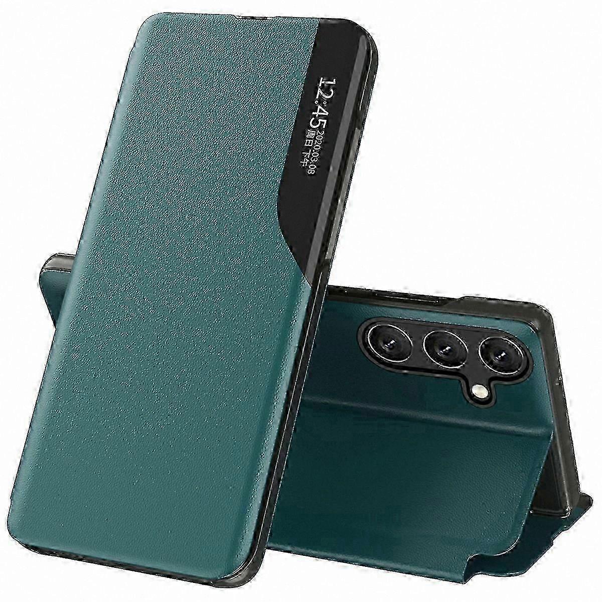 For Samsung Galaxy S25+ Case Stand Full Protection Leather Phone Cover - Green Premium Material Combination Made from high-quality PU leather and PC, this case offers both durability and a luxurious feel Auto-adsorption with Nano Adhesive Equipped with innovative nano double-sided adhesive for secure auto-adsorption, ensuring the case remains firmly in place Stand Functionality Includes a built-in stand function for hands-free viewing and easy use, perfect for watching videos or video calls Precise Cutouts Designed with precise cutouts for all ports, buttons, and the camera, allowing full access to all features without removing the case Full Body Protection Provides comprehensive protection, safeguarding your phone against scratches, drops, and daily wear while maintaining a slim profile Package included: 1 x Leather Phone Case Other things not included
