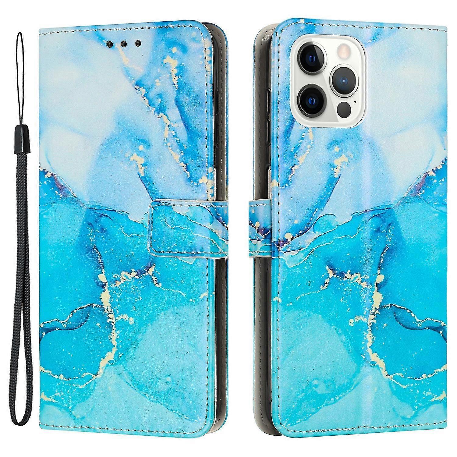Stand Wallet Leather Case compatible 15 Pro, Marble Pattern Phone Cover With Wrist Strap