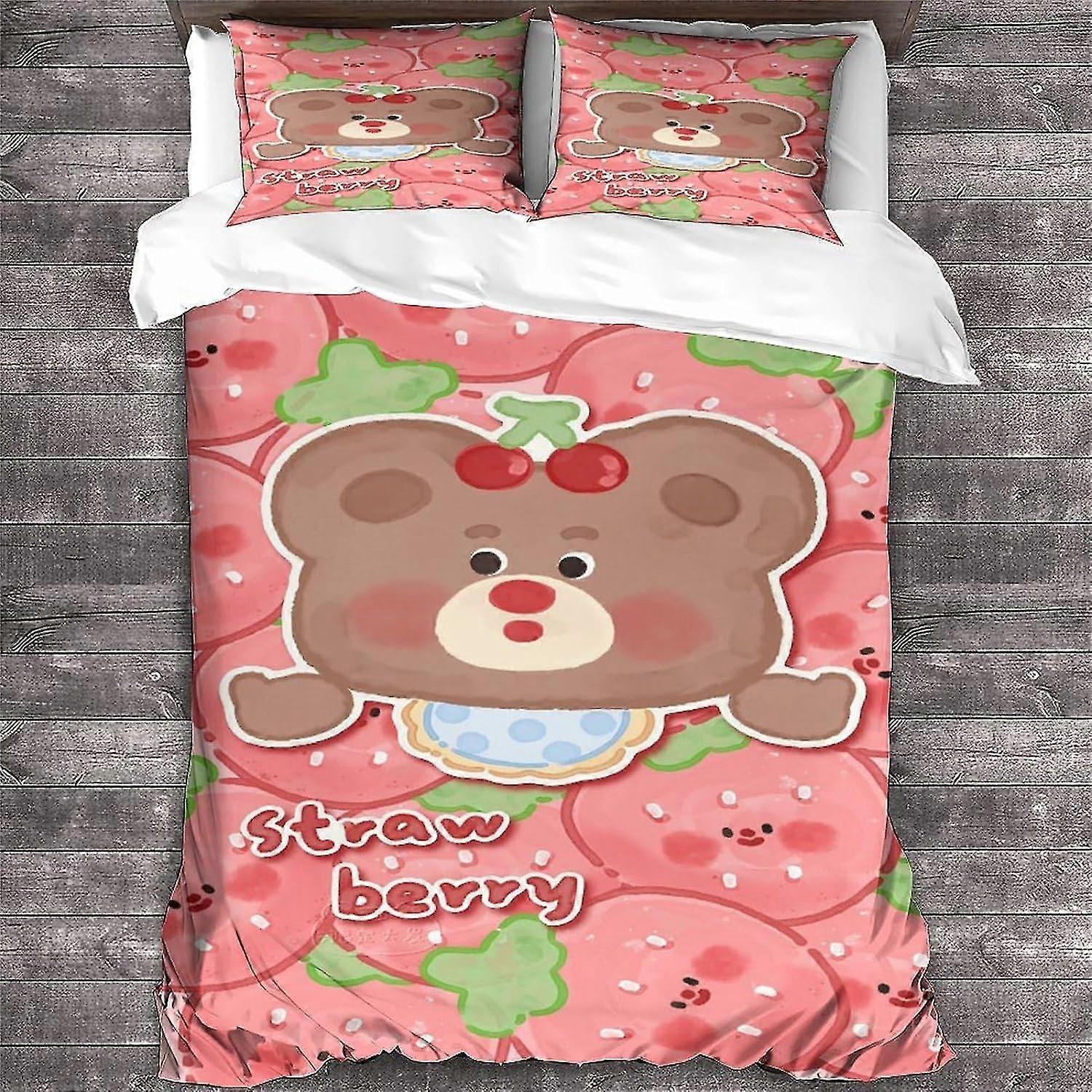 Bear Duvet Cover Double Cartoon Pattern Bedding Set Soft Lightweight Microfiber Quilt Cover with Zipper Closure Double