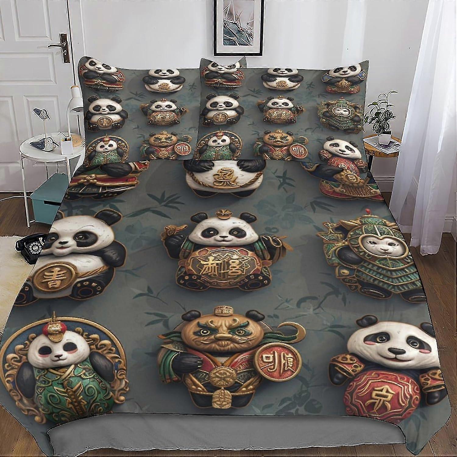Cute Panda 3D Printed Duvet Cover 3PCs Animal Quilt Cover Bedding Set with Microfiber and Hidden Zipper Closure for Kids
