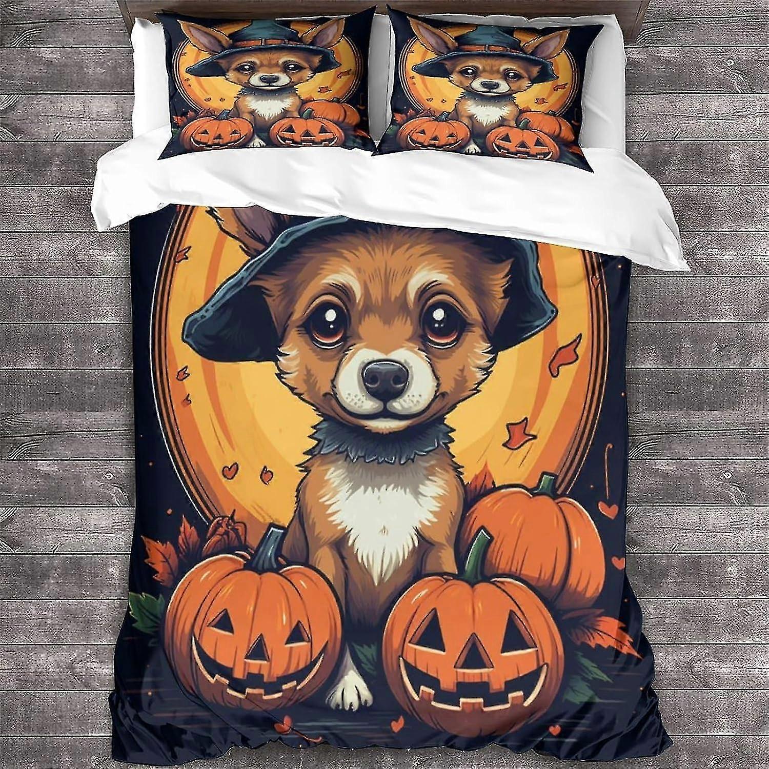 Pet Duvet Cover 3D Animal Printed Bedding Set 3Pcs Microfiber Halloween Quilt Cover with Zipper Closure Double