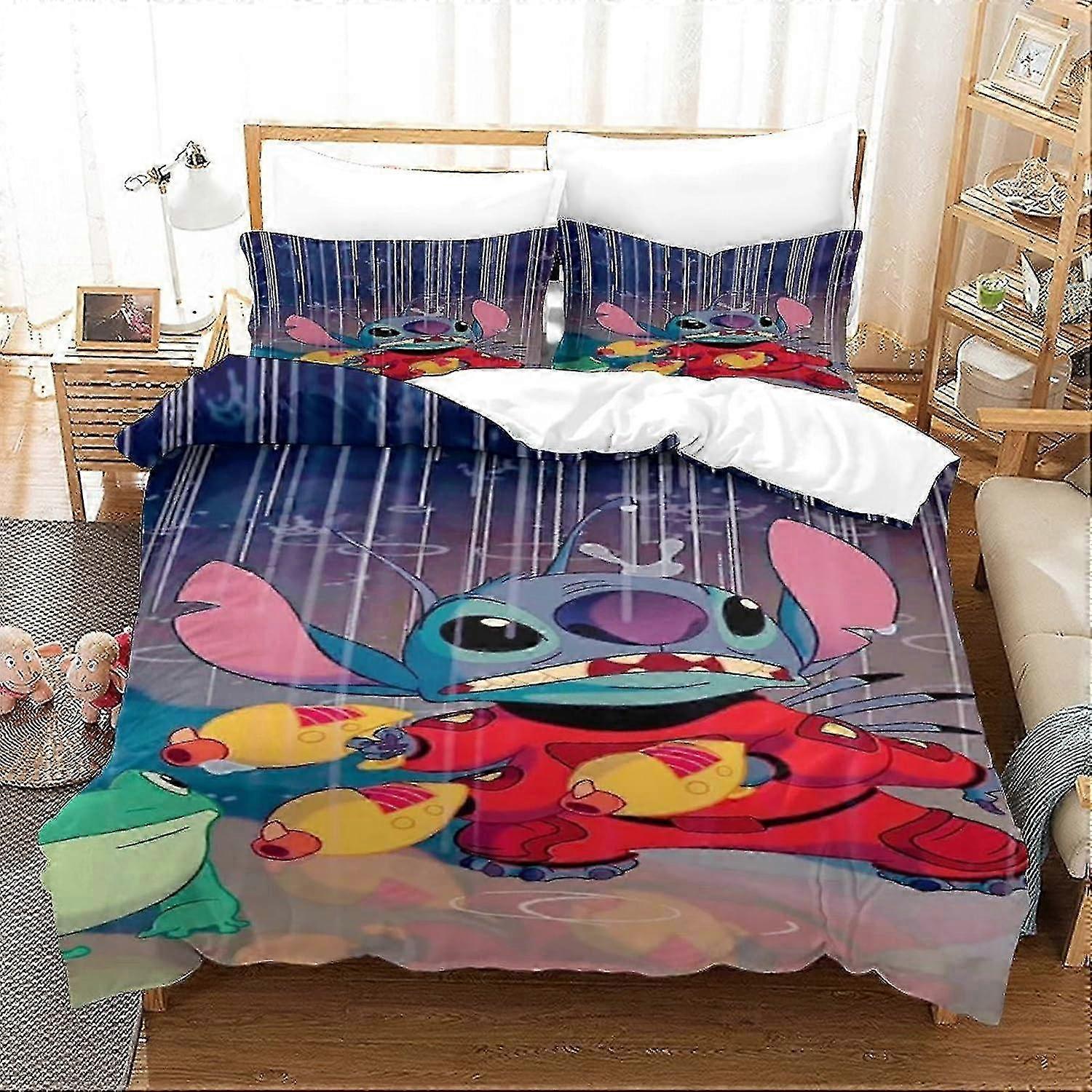 Stitch Duvet Cover with Pillowcases Lilo & Stitch Printed Bedding Set with Zipper Closure Duvet Cover Set Suitable for Boys 135*200 CM 25-26