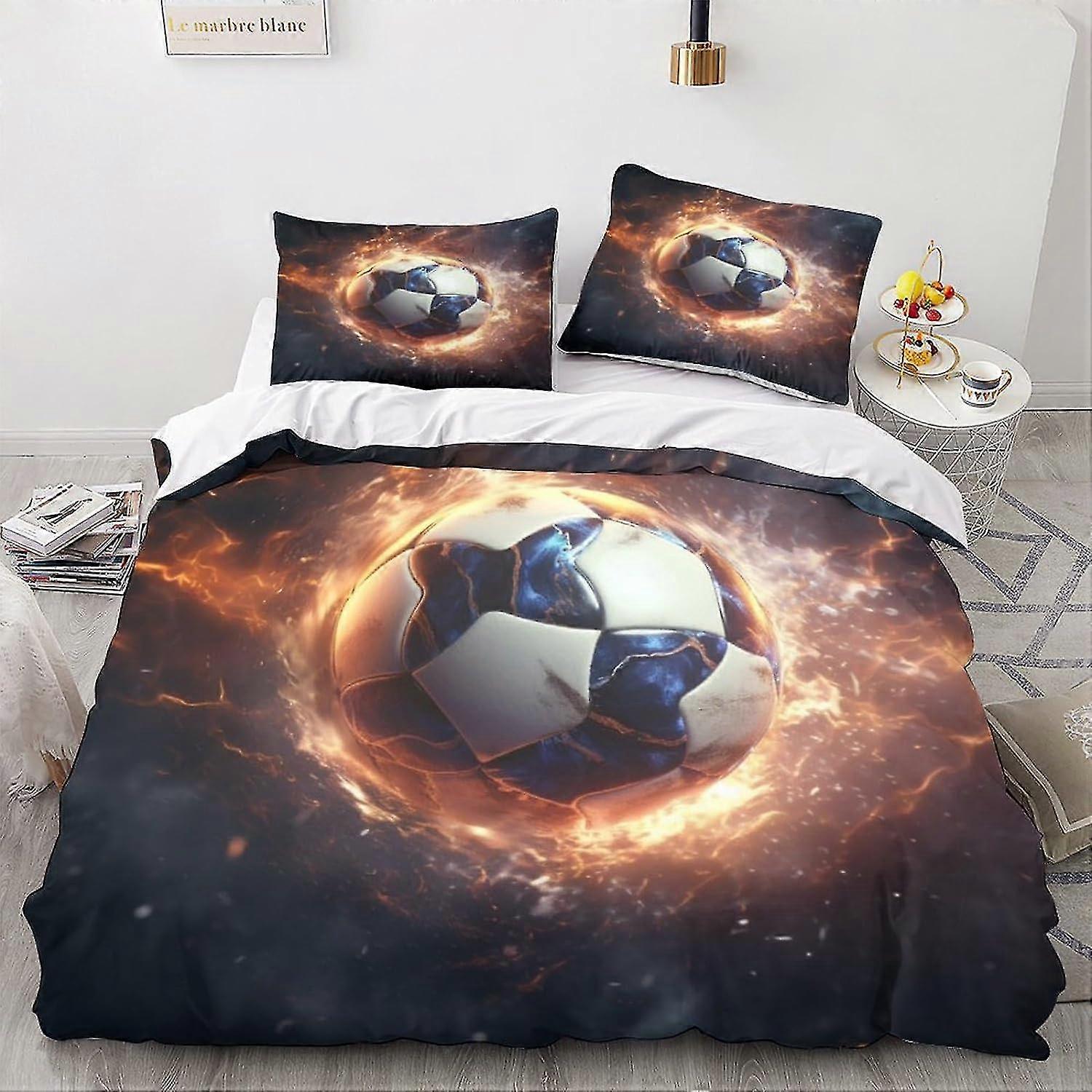 3D Printed Football Soccer Ball Duvet Cover with Pillowcases Sport Bedding Set with Zipper Closure Soft Microfiber Quilt Cover Set Double
