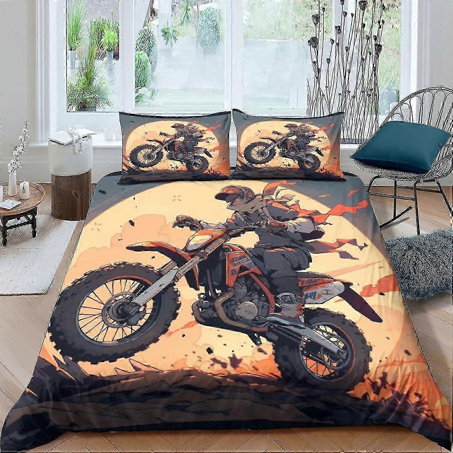 EKENOZ 3D Printed Motocross Duvet Cover with Pillowcases Bedding Set Extreme Sports Comforter Cover 3 Pcs with Zipper Closure Soft Microfibe