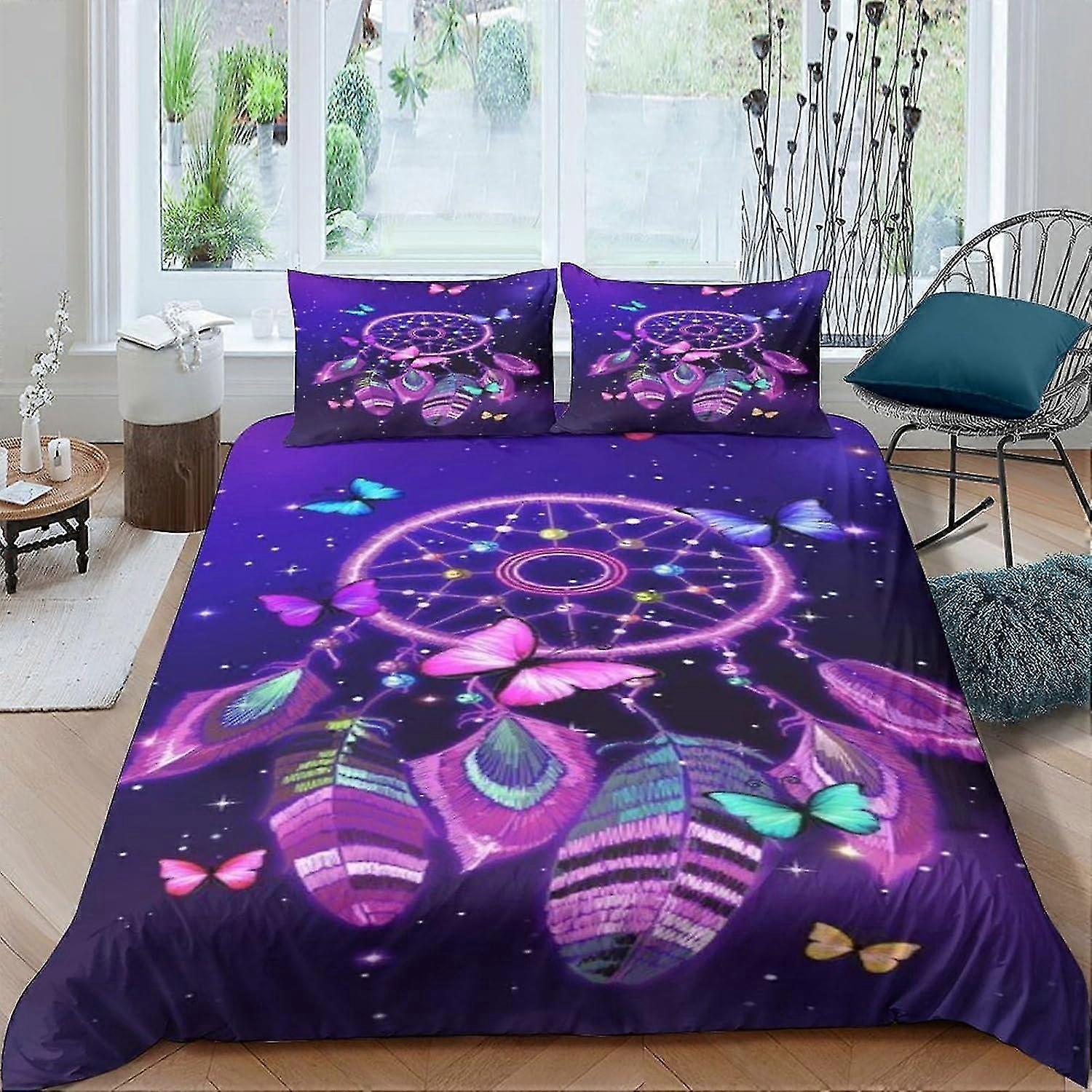 Dream Catcher Duvet Cover with Zipper Closure, Soft Microfiber Purple Bedding Set Suitable for Any Brand