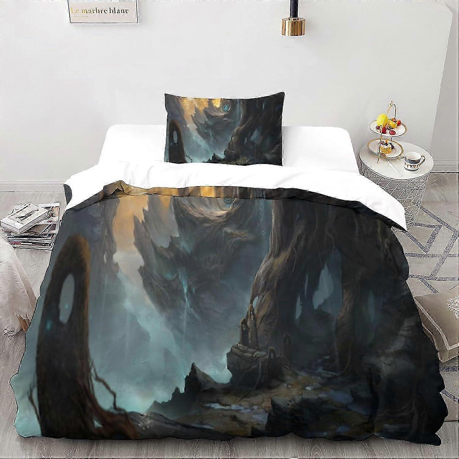 2025 A Magical Landscape D Printed Duvet Cover, Piece Sets, Landscape Microfiber Bedding Set with Pillowcase Zipper Closure for Adults and Children H