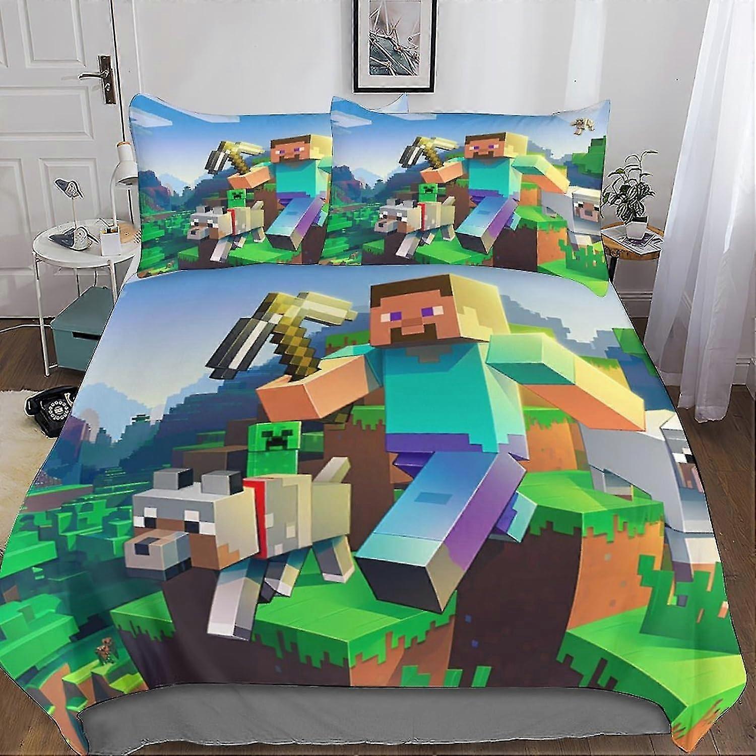 DSJackson Roblox World 3D Printed Duvet Cover 3 Pieces Roblox Quilt Cover Bedding Set with Microfiber with Hidden Zipper Closure with Pillowcases for