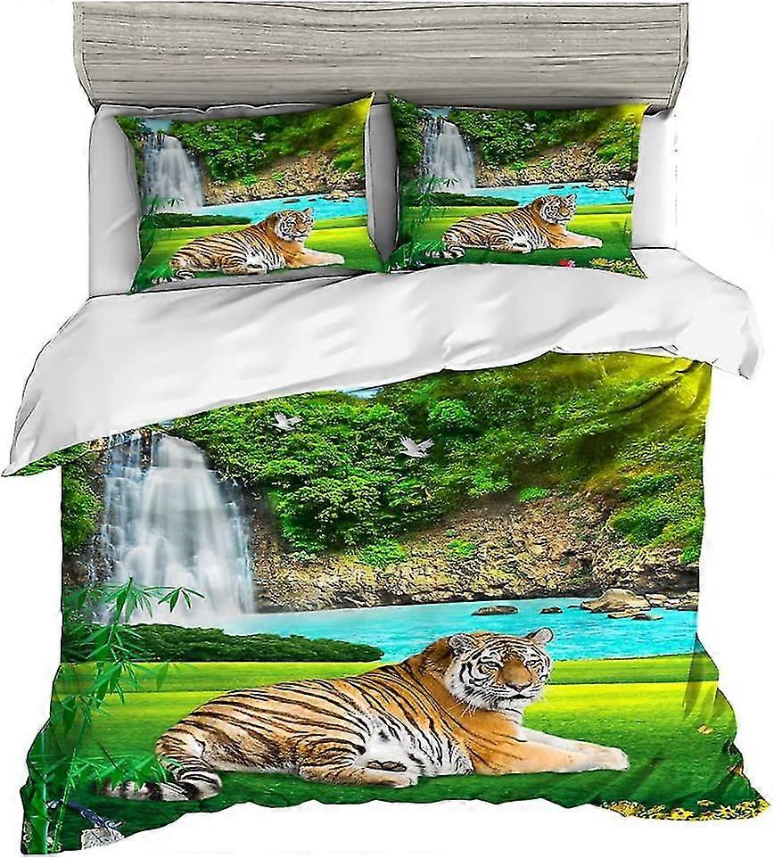 Duvet Cover Tiger Pattern 3d Animal Print Bedding Set For Kids Boy Girl Blue Green Yellow Quilt Cover With Pillowcase (style 3,single 150x200 Cm)