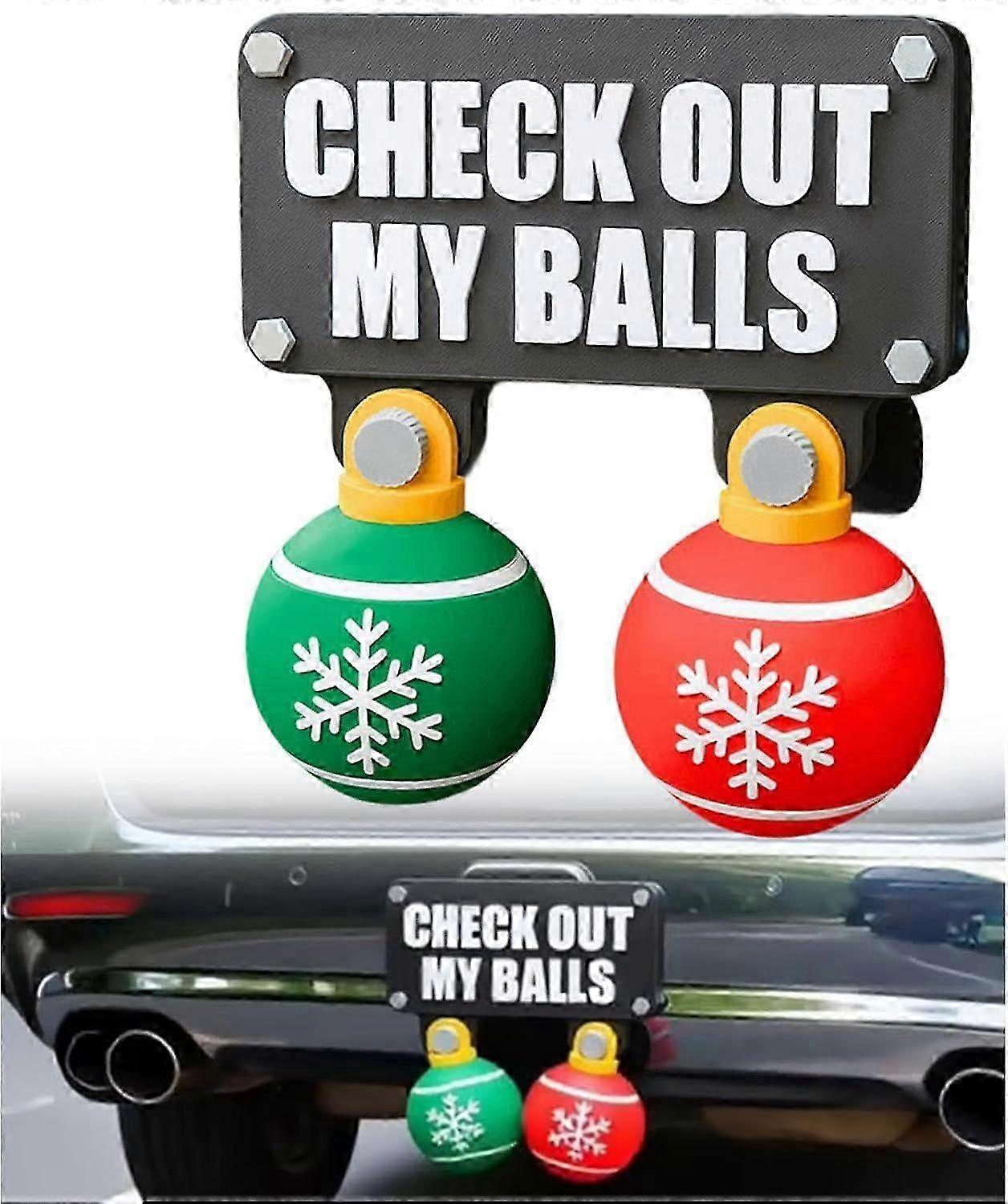 Funny Check Out My Balls Christmas Hitch Cover Set, Novelty Xmas Hitch Cover with Check Out My Balls Sign, Swinging Christmas Balls for Hitch Receiver