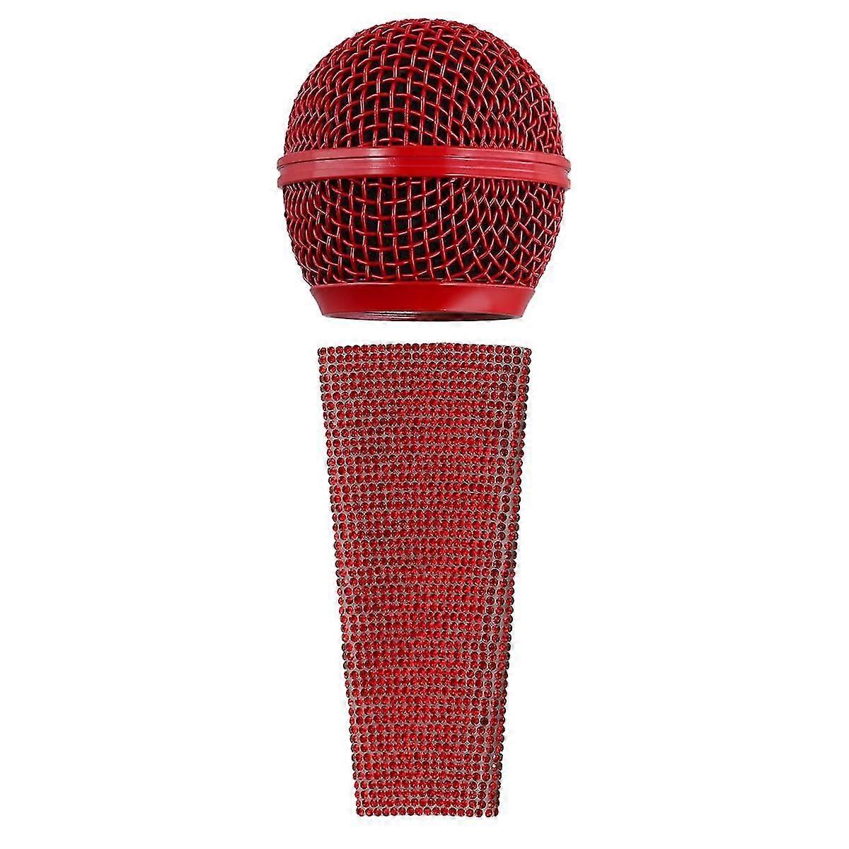 Sparkle Microphone Sleeve Wireled Mic Hand Cover And Mesh Microphone Grill For Sm58 Microphones Red