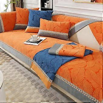 Luxury Chenille Jacquard Leaves 2 3 Seater Sofa Slipcover Leather Couch Cover Non -Slip Patchwork Recliner Furniture Protector