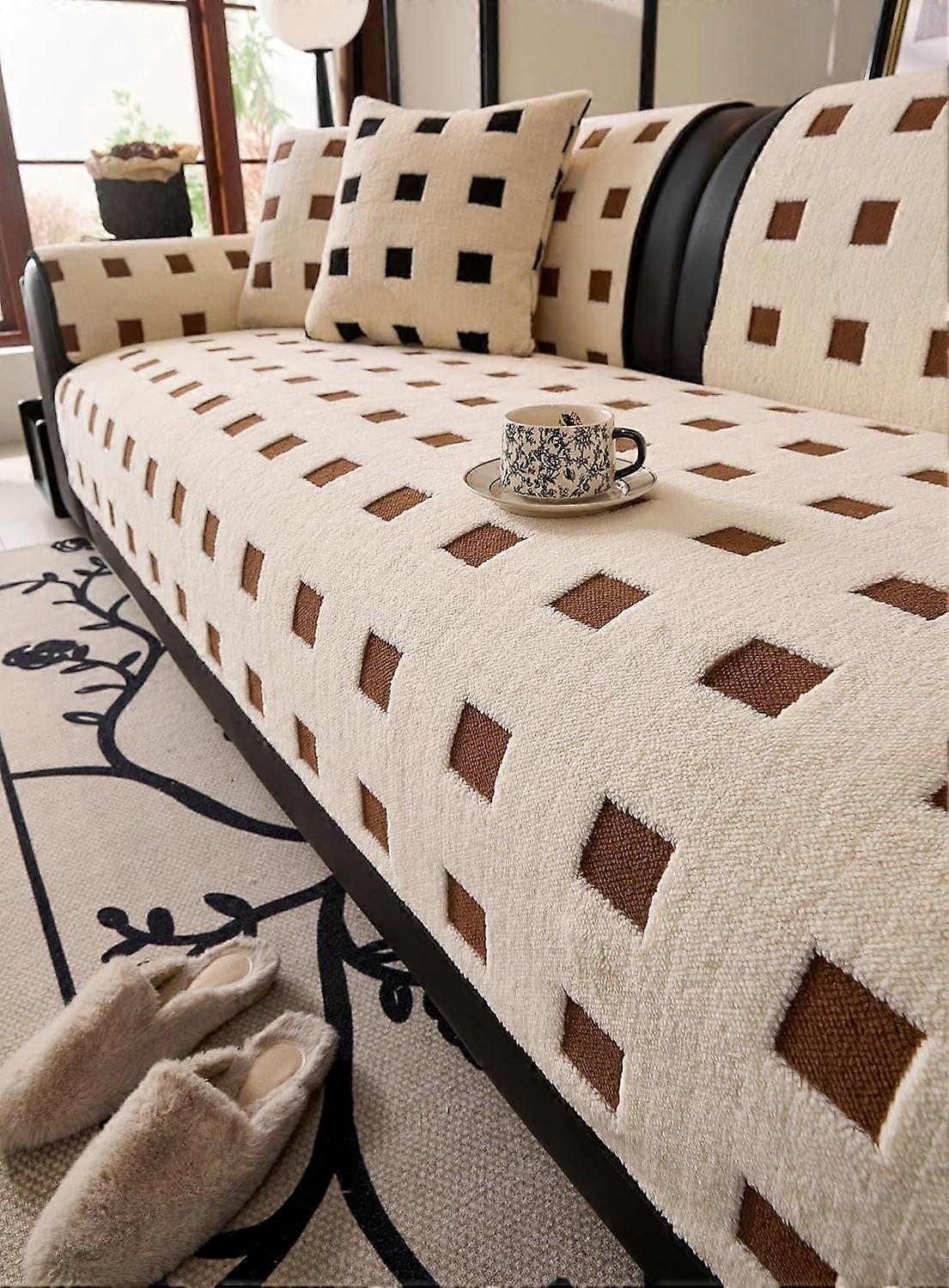 3D Plaid Fleece Couch Cover Soft Cozy Fluffy Fuzzy Sectional Couch Cover Non Slip Checkere