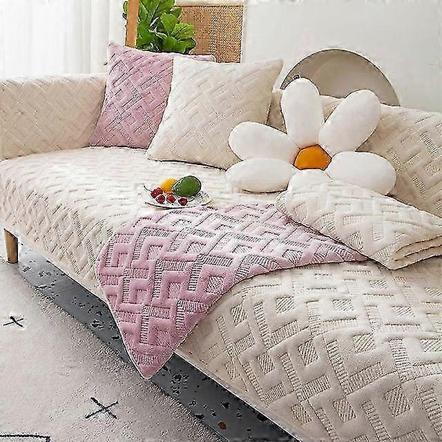 Autumn and Winter Milk Velvet Plaid Sofa Cover Plush Thickening Living Room Sofa Cushion Furniture Protective Covers 2025
