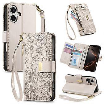 Flowers Leaves Zipper Wallet Leather Phone Case with Strap