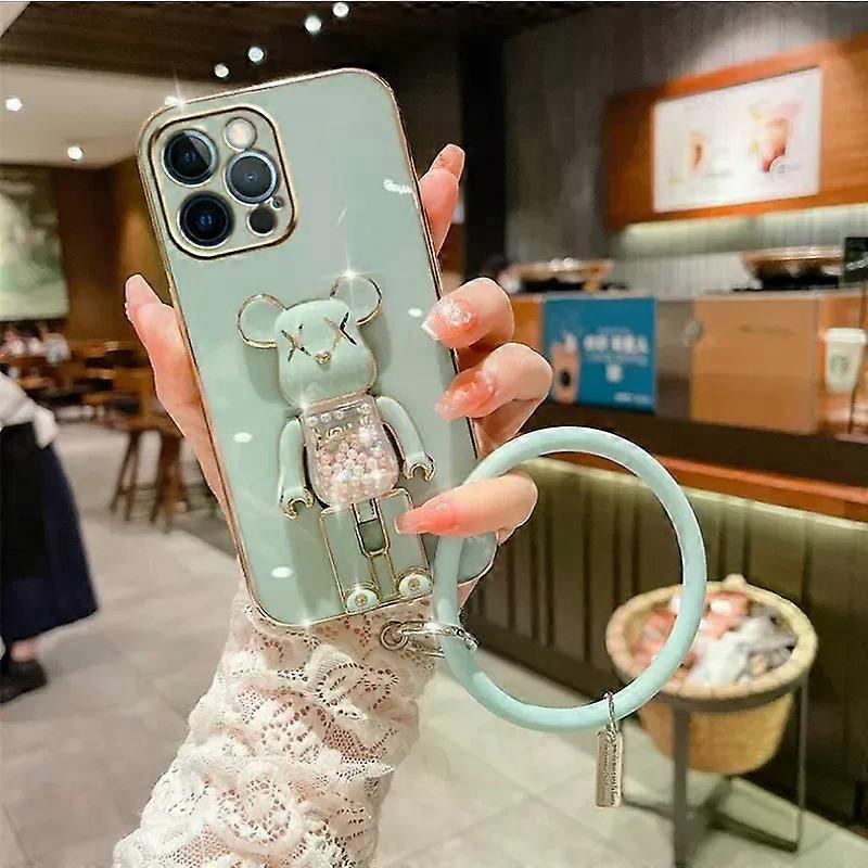 3D Candy Color Bear Rotating Phone Case for iPhone 15 14 12 pro X XS XR 7 8 plus Silver Elegant with Wrist Strap Compatible with Apple