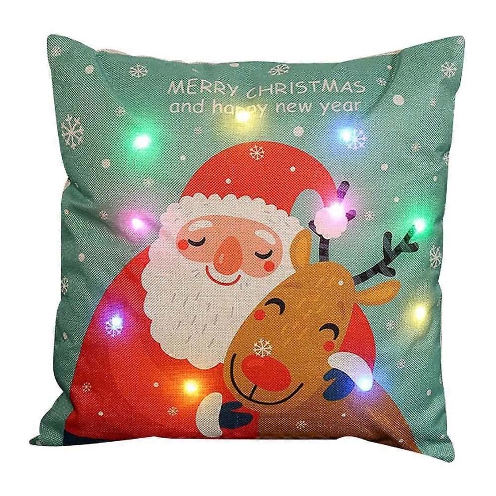 Christmas Throw Pillow Cover with LED Lights Linen Decorative Cushion Cover