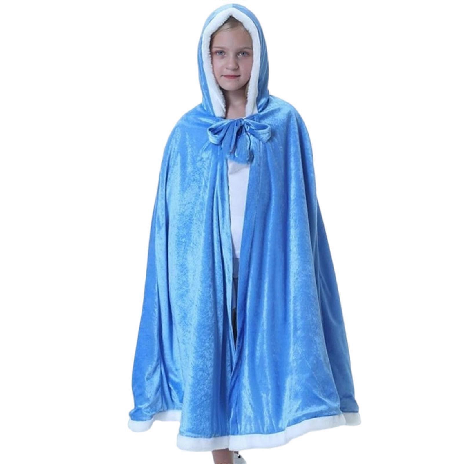Dressing Up Hodded Cape Cloak Princess Hooded Cape Cloak Halloween Princess Costumes Faux Furs Princess Cape with Hood Sky blue Shoulder to skirt 10