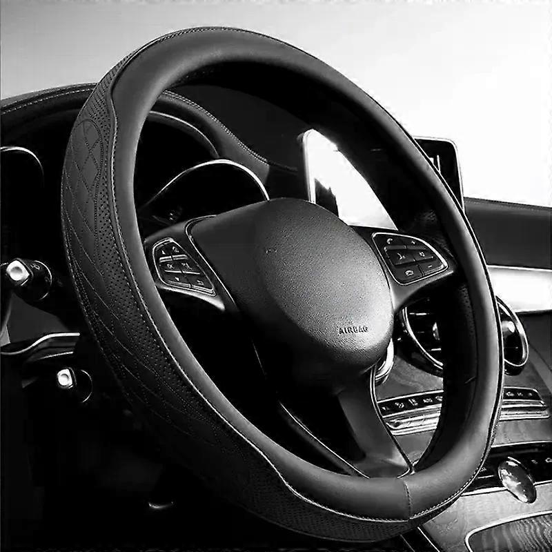 Napa Leather Perforated Patchwork Steering Wheel Cover Non-Slip Breathable Car Accessory Interior Universal 15Inch (Approx 38cm)