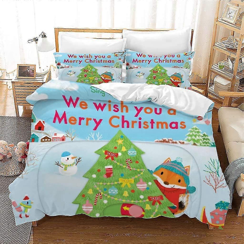 Super King Duvet Cover Sets Christmas Cartoon Fox Easy-care Bedding Sets With Zipper Closure, 1 Superking Size Duvet Cover 260 X 220 Cm + 2 Pillowcase