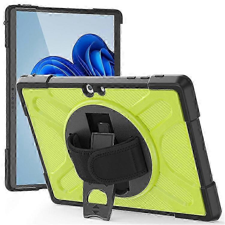 Dual layers of protection: hard PC back and soft TPU bumper frame, greatly deflecting and absorbing shock Reinforced corners effectively defend against shock and drop Inner non-slip lining more securely fits the device Integrated kickstand frees your hands for landscape or portrait viewing Convenient hand strap can be adjusted freely according to your hand size Protect your tablet from daily damages with style Compatible with: Microsoft Surface Go or Go 2 or Go 3 10.5 inch