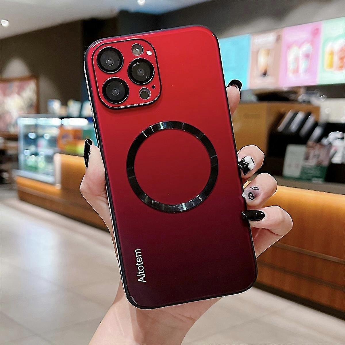 Magnetic Case Compatible With Iphone 15 Pro Max, Gradient Color Glass Back Cover With Lens Protector, Compatible With Magsafe