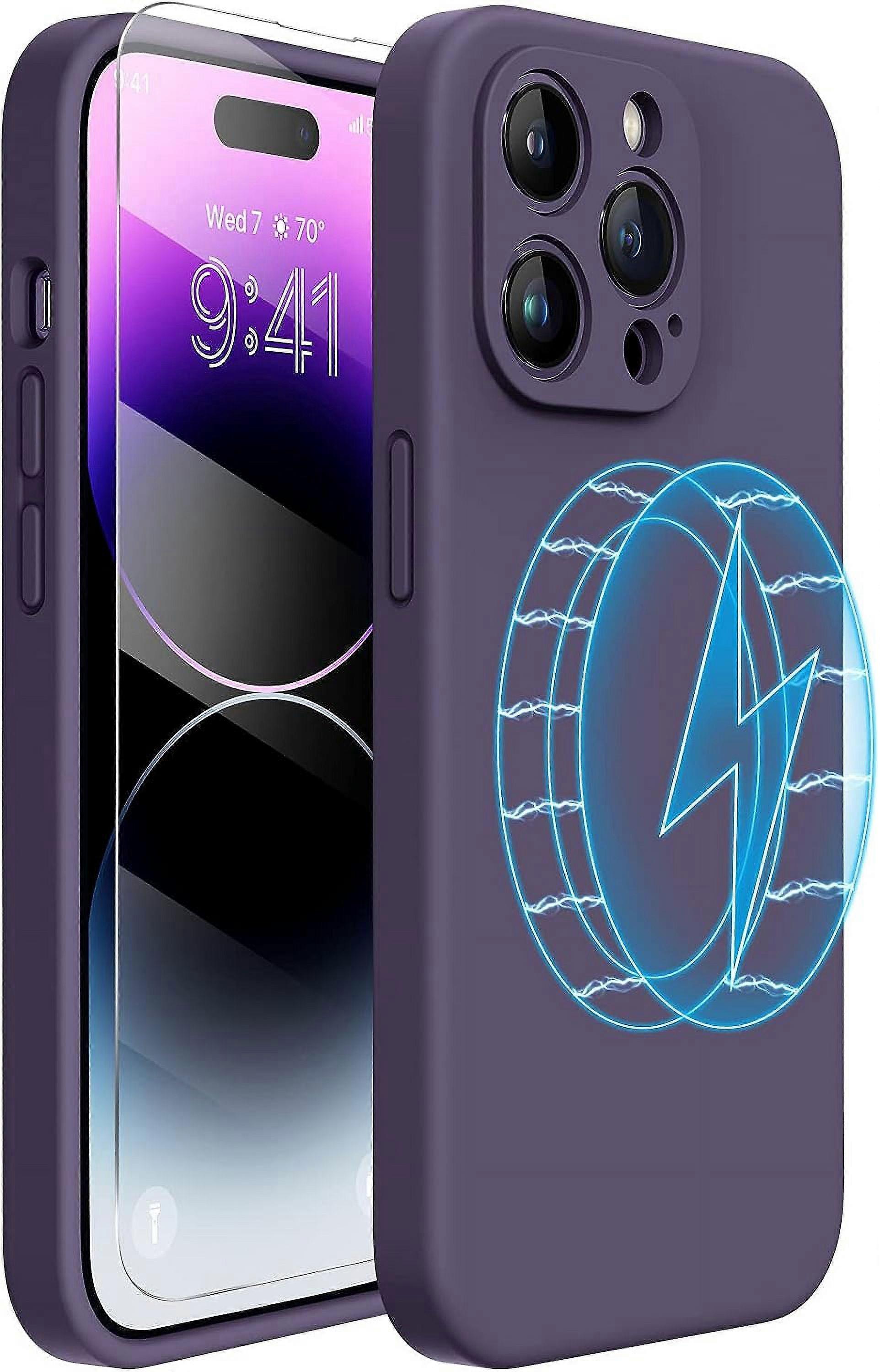 Miracase Magnetic Case compatible with iPhone 14 Pro Max, Shockproof Liquid Silicone with Screen Protector, Upgraded Camera Protection, 6.7 inch,