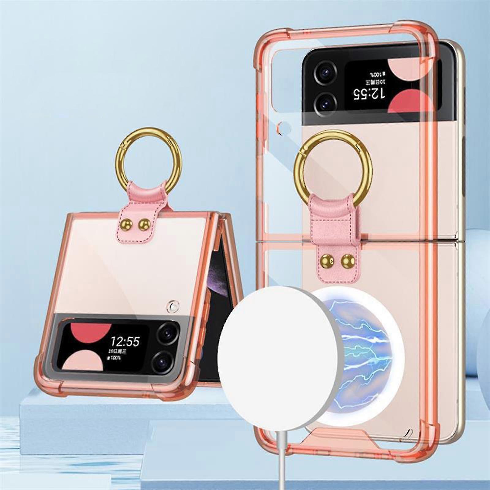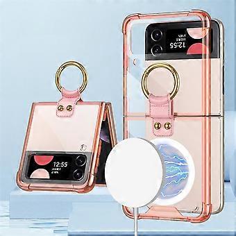 Magnetic Clear Case Compatible With Samsung Galaxy Z Flip 4, Ultra Thin Hard Pc Shockproof Cover With Ring G