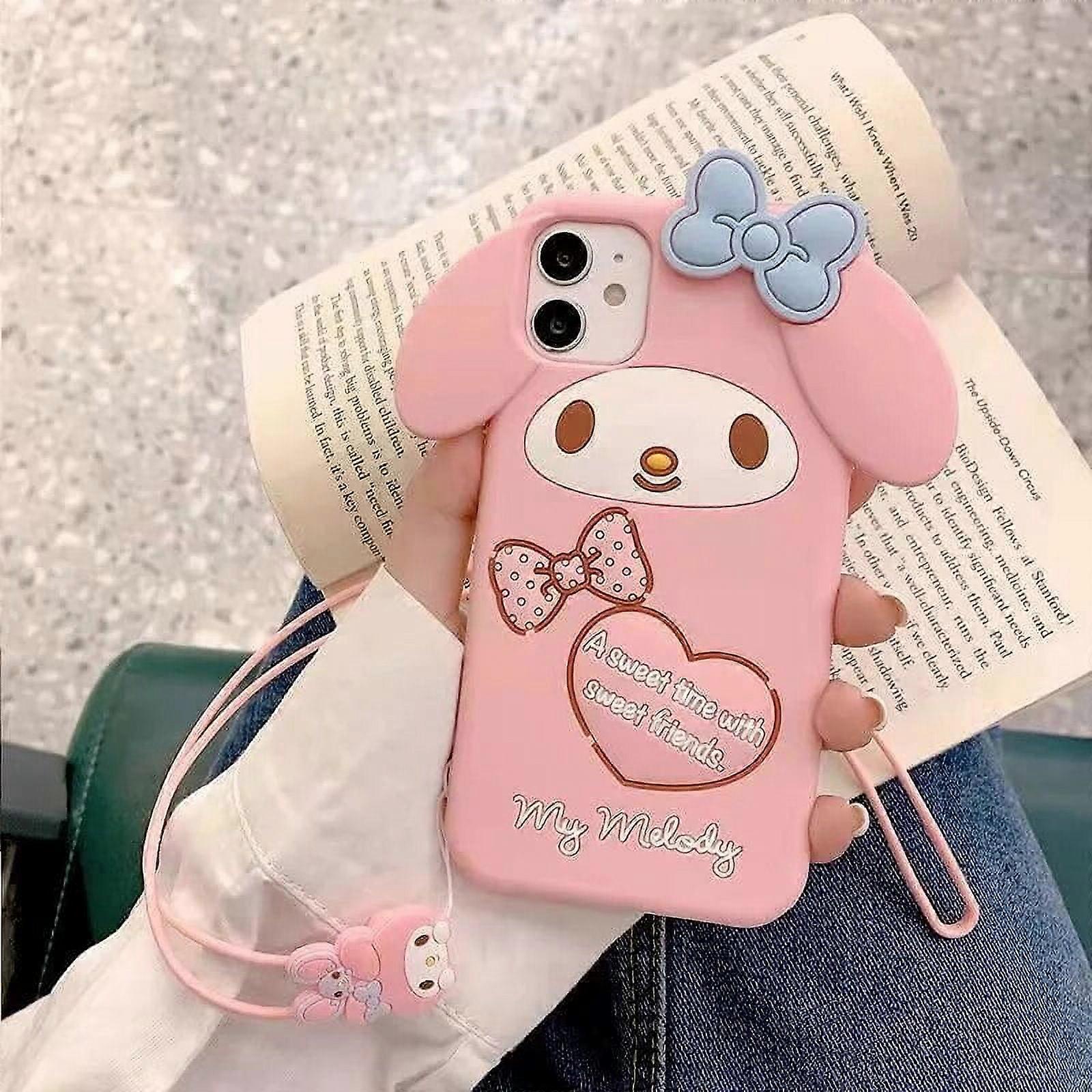 Sanrio My Melody Pink with lanyard Phone Case For compatible with Iphone 11 12 13 14 15 Pro Max Mini X Xs Xr 7 8 Plus SE 2020 Shockproof Cover