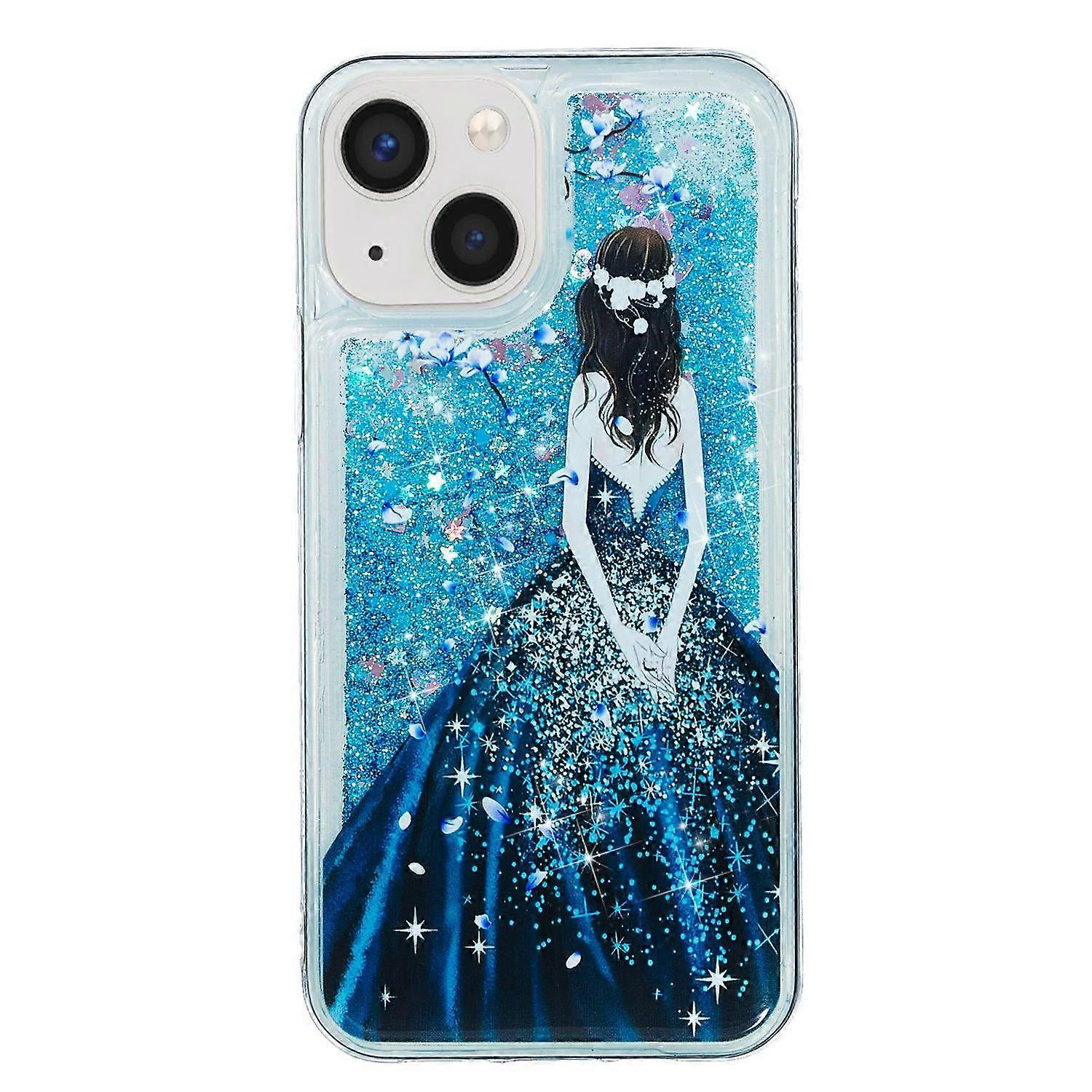 For iPhone 14 6.1 inch Quicksand Glitter Cell Phone Case Soft TPU Shockproof Pattern Printing Cover