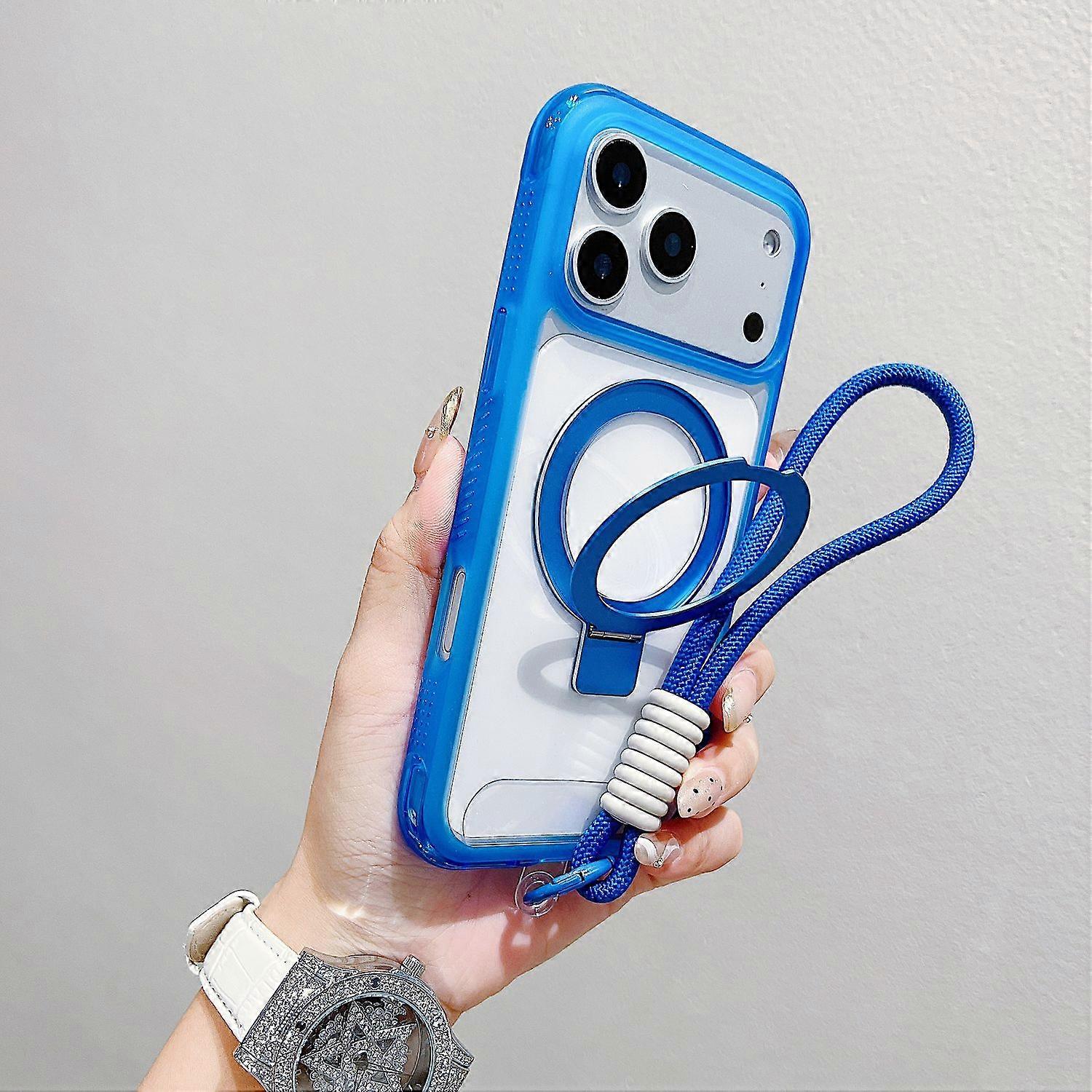 For iPhone 17 Pro Case Compatible with MagSafe Kickstand Clear TPU PC Phone Back Cover with Wrist St