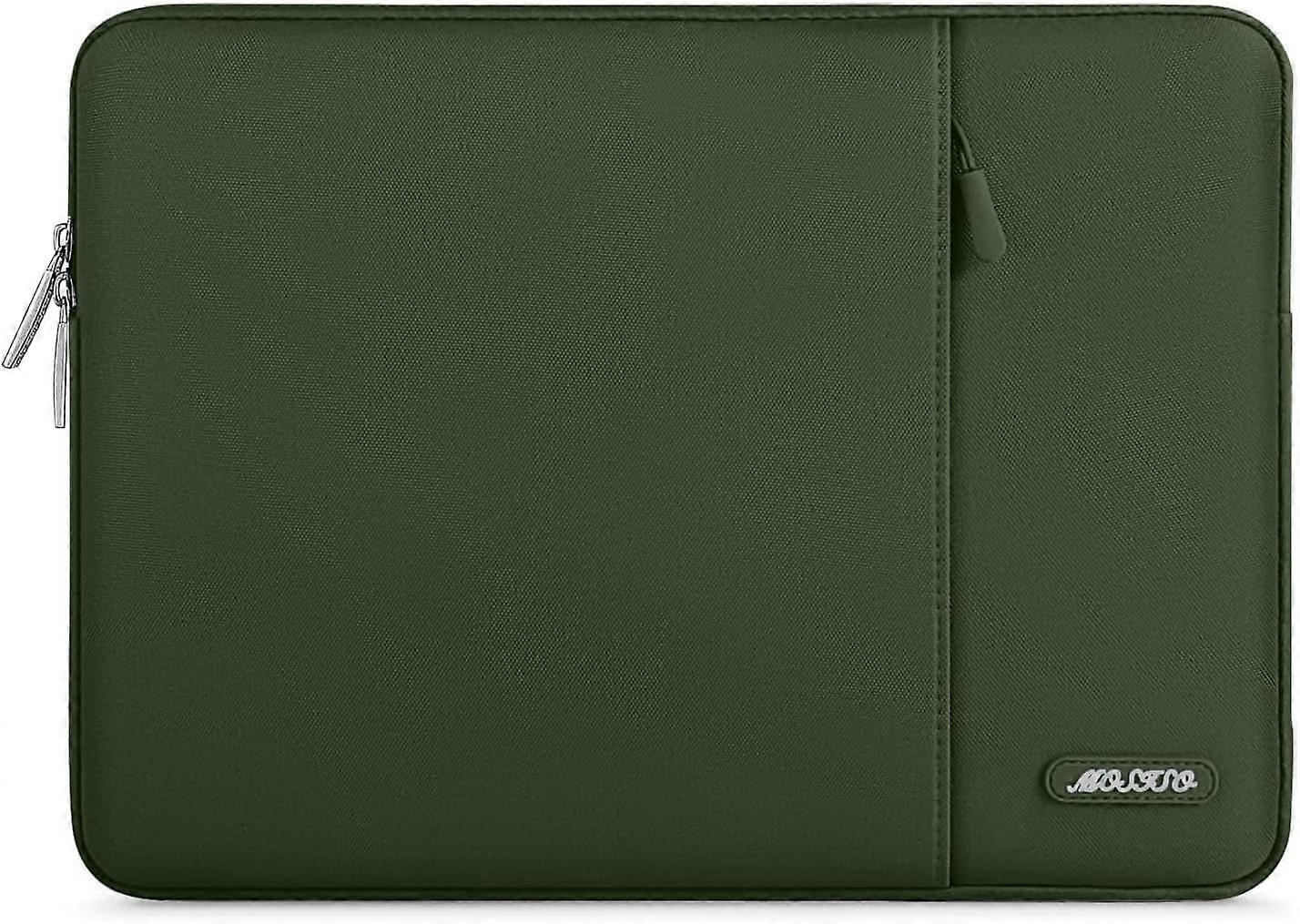 Laptop Sleeve Bag Compatible with Laptop 15 inch, Polyester Vertical Case with Pocket, Army Green