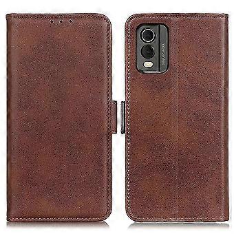 Phone Cover for Nokia C32 Anti-drop Cowhide Texture PU Leather Foldable Stand Wallet Case