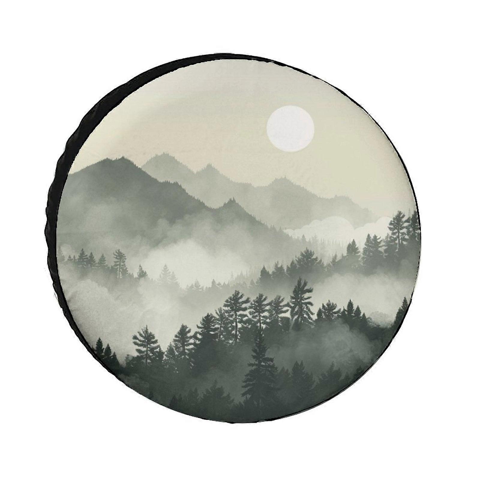 Foggy Forest Spare Tire Cover with Pine Trees & Mountains, Weatherproof 13" Wheel Cover, Compatible with 13" Tires